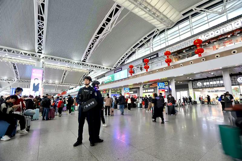 2025年春運出行客流將于1月22起逐日迎來高峰。廣州鐵路公安處管內(nèi)廣州南站、廣州站、廣州白云站等重點車站也逐漸呈現(xiàn)“滿員”狀態(tài)。為確保旅客群眾平安順利乘車,廣州鐵路警方針對拉客擾序、盜竊詐騙等重點治安問題,多措并舉持續(xù)嚴(yán)厲打擊,全力營造出行良好環(huán)境。