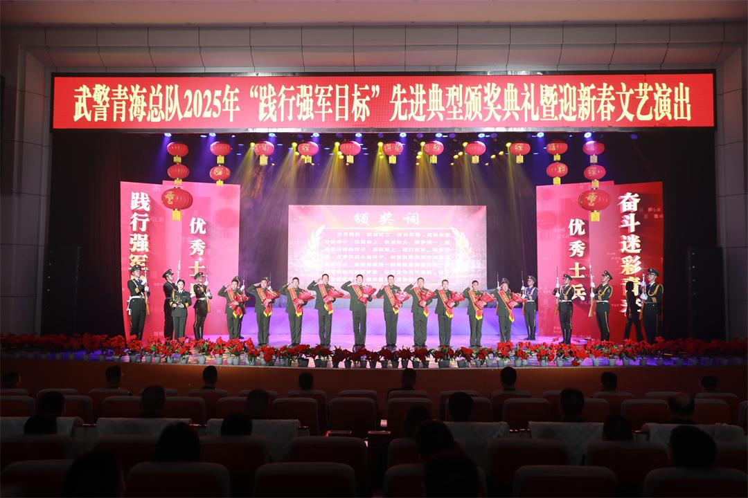 節(jié)目間隙還穿插了武警青??傟?025年“踐行強軍目標(biāo)”先進典型頒獎環(huán)節(jié),總隊首長分別為8名警官、10名士兵和2名文職人員頒發(fā)“踐行強軍目標(biāo)”優(yōu)秀個人榮譽。一年來,在總隊黨委的堅強領(lǐng)導(dǎo)下,官兵們堅定信心、團結(jié)奮進、凝心聚力、勇?lián)姑?,涌現(xiàn)出很多先進典型和模范。