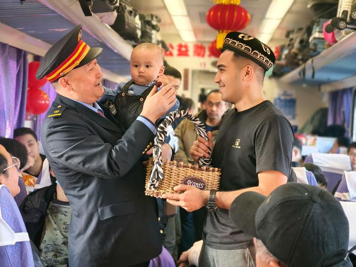 “列車巴扎開市啦!”1月25日早9點,祖國大西北,7558次“和田玉龍?zhí)枴绷熊囬_出新疆和田站。沒多久,12號車廂里就傳來列車長坡拉提汗的吆喝聲。車廂里立馬熱鬧起來,售賣農(nóng)副產(chǎn)品的吆喝聲、旅客的笑聲和交談聲奏響了歡樂的旋律……