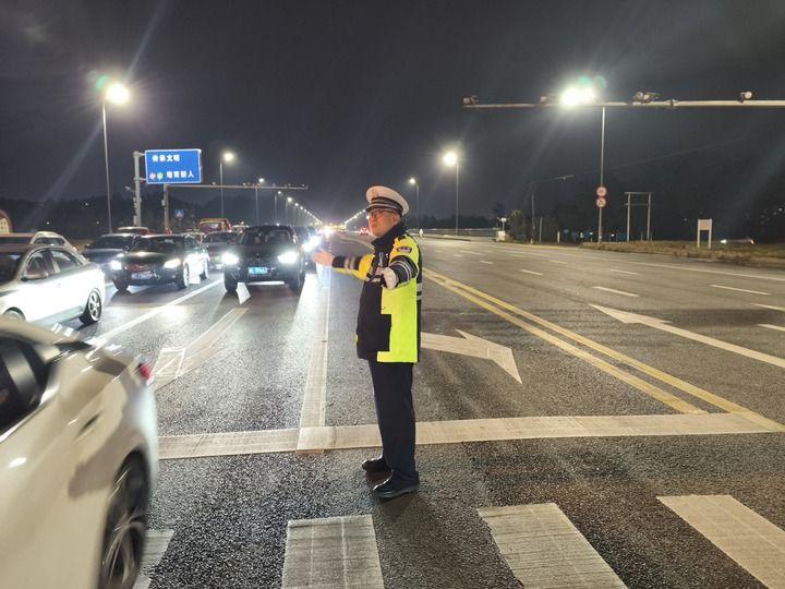 1月25日晚,張潔在樂山市蘇稽新區(qū)西岸路口指揮疏導交通。新華社發(fā)(劉冉攝)
