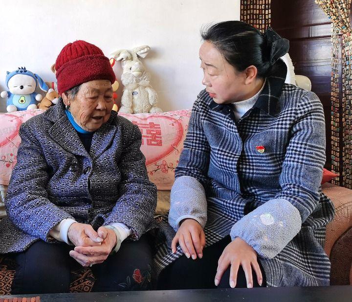 楊汝鈺(右)在社區(qū)一位老人家中進行入戶慰問。新華社發(fā)(李建華攝)