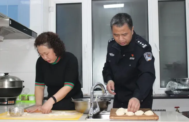 圖為喬繼兵的妻子張秀梅春節(jié)到派出所為戰(zhàn)友包餃子。