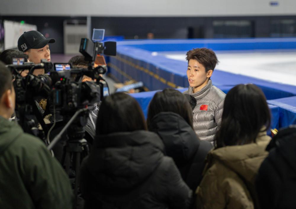 1月21日,中國短道速滑國家集訓(xùn)隊領(lǐng)隊劉辰宇接受媒體采訪。新華社記者 孫非 攝