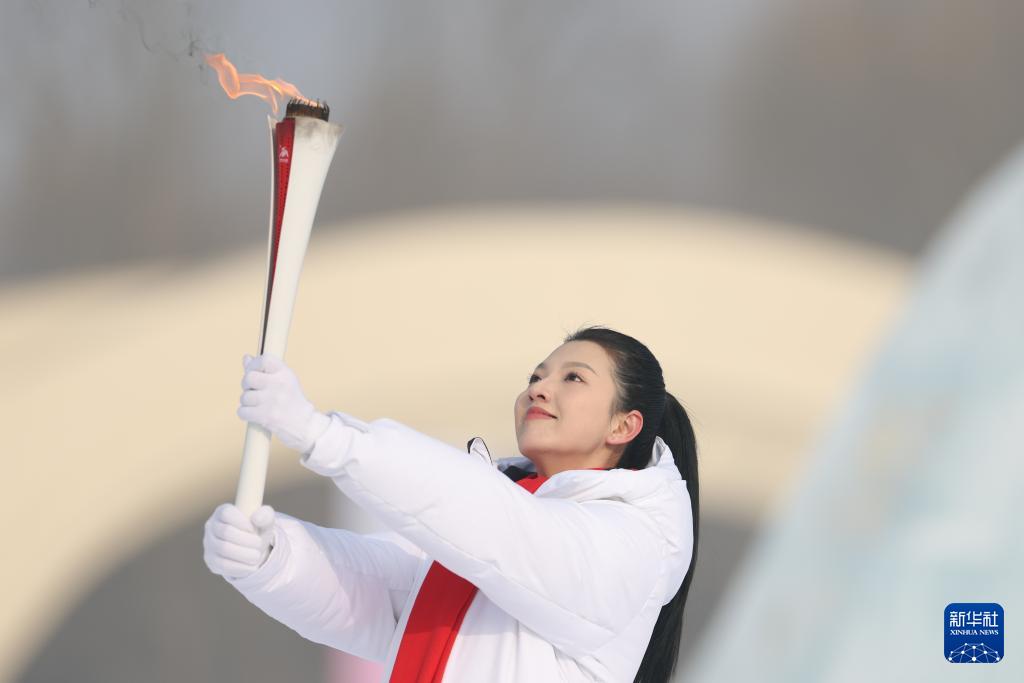 1月20日,采火使者正在展示圣火。新華社記者 張濤 攝