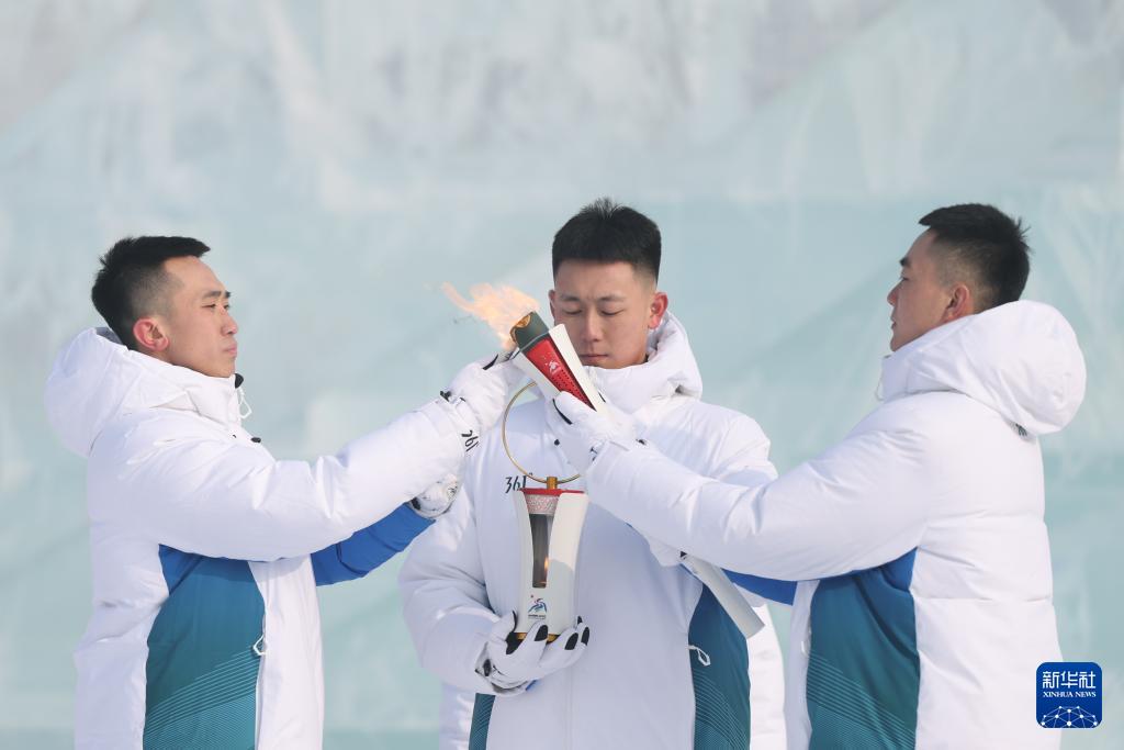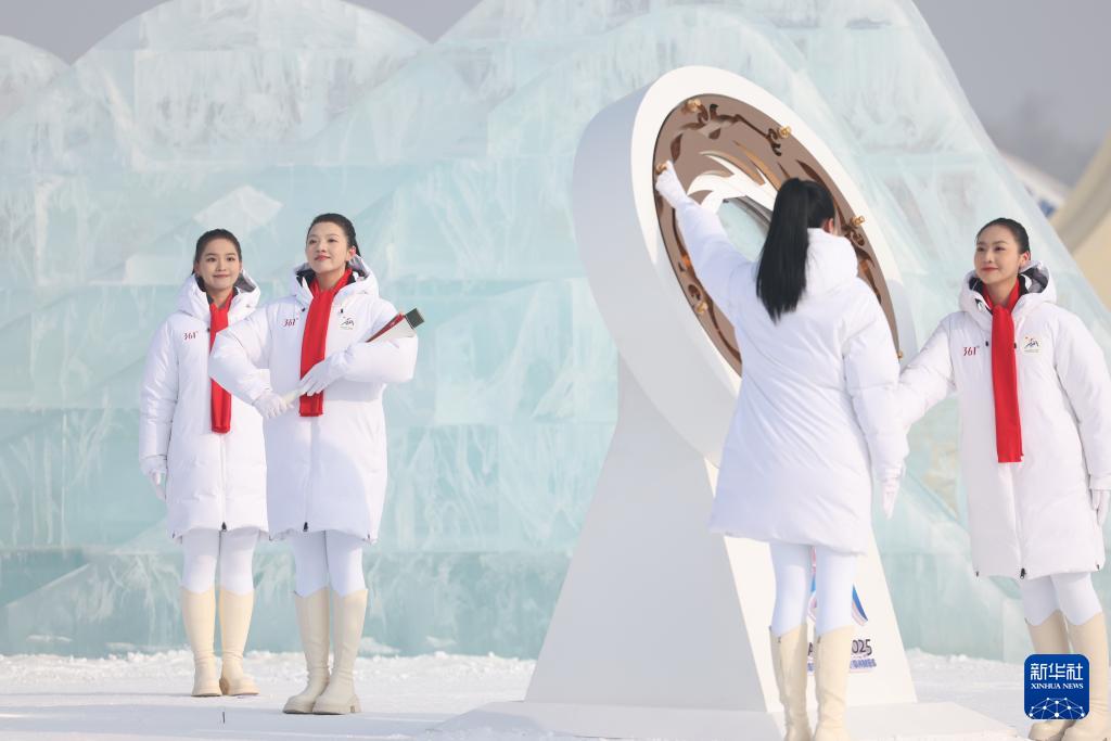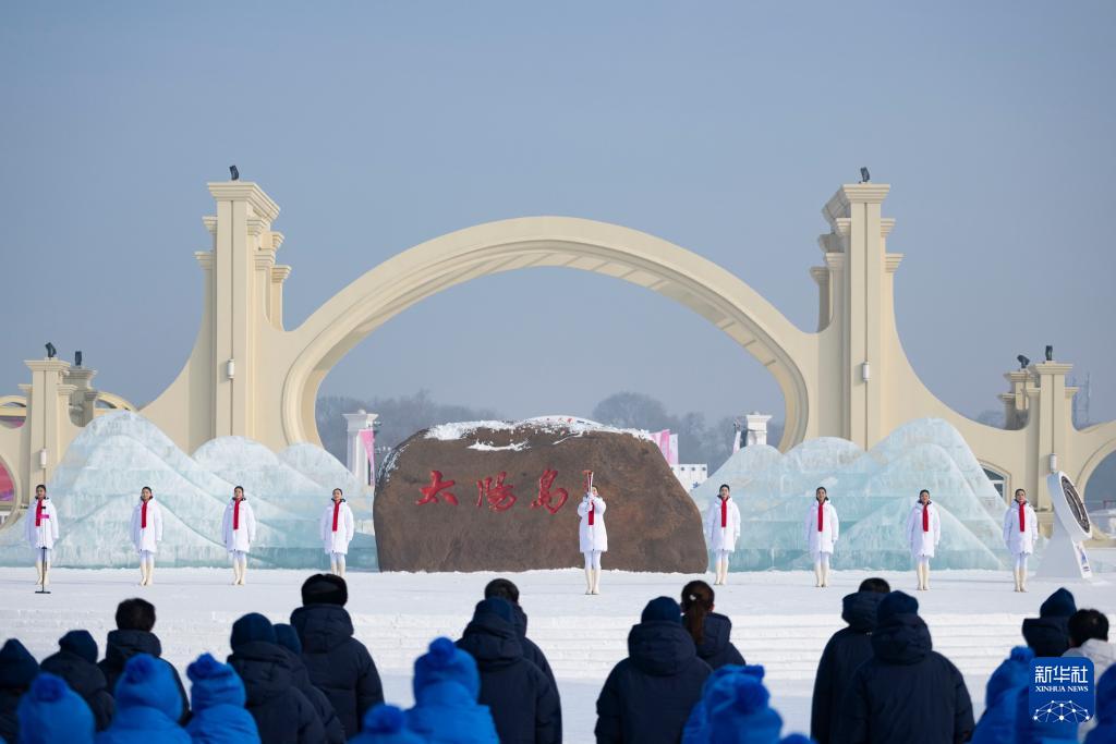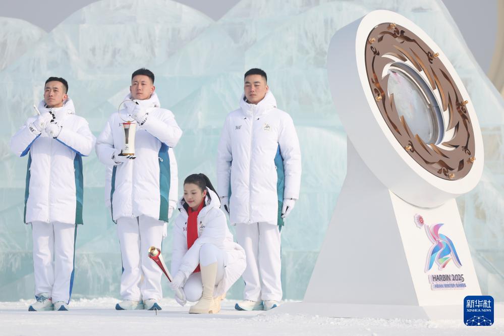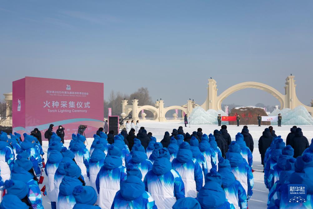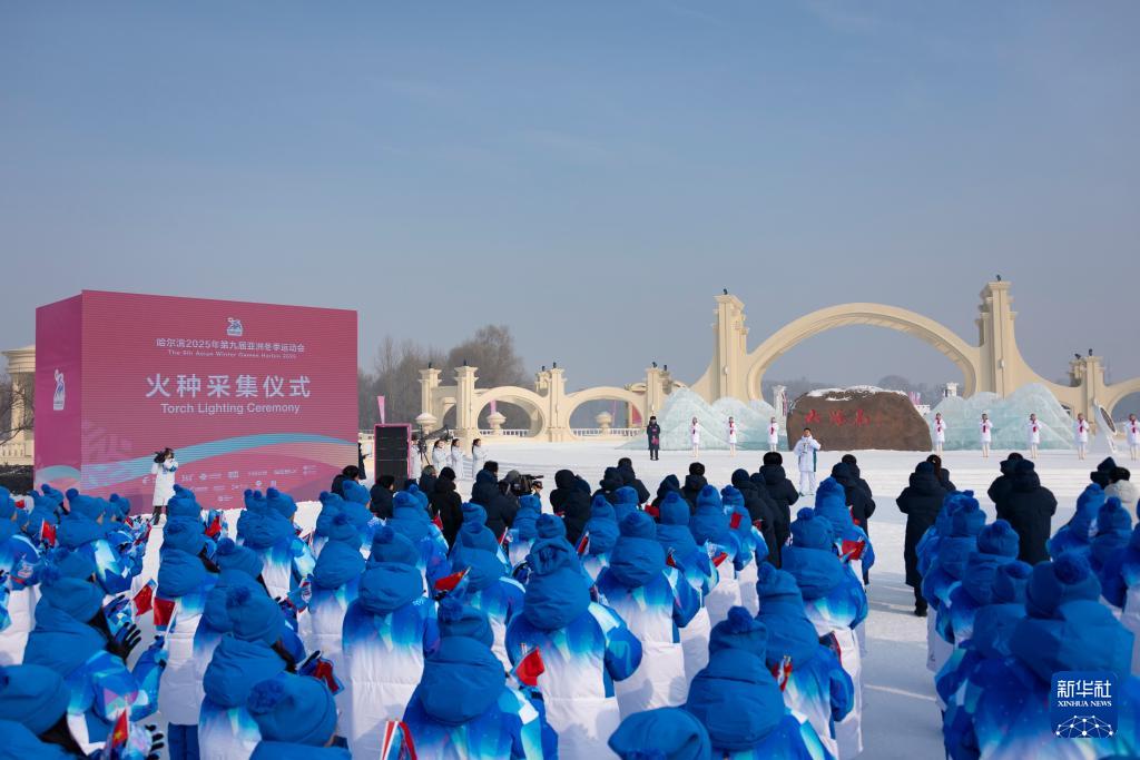 這是1月20日拍攝的太陽島風(fēng)景區(qū)舉行的2025年第九屆亞洲冬季運(yùn)動(dòng)會(huì)火種采集儀式現(xiàn)場(chǎng)。新華社記者 王松 攝