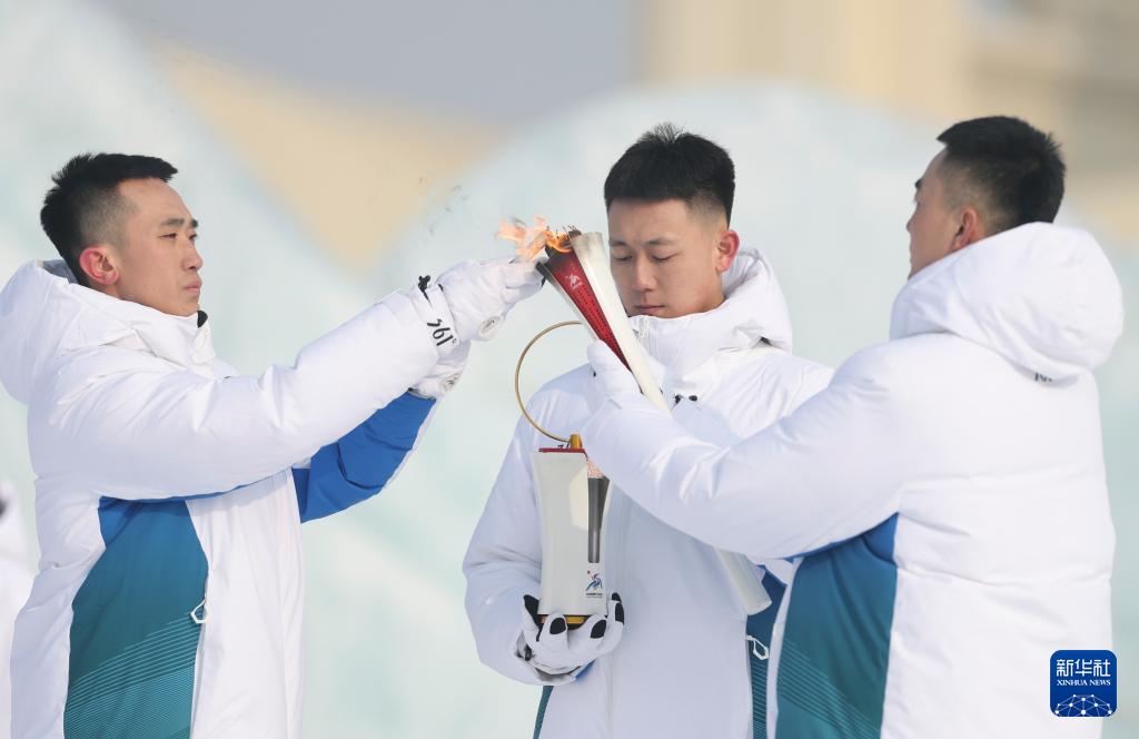 1月20日,采火使者正在傳遞火種。新華社記者 張濤 攝