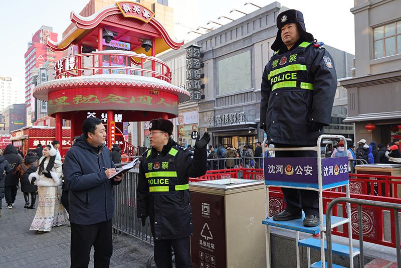 在中街知名的頭條胡同,一組由沈河公安分局統(tǒng)一部署的五里河派出所警力正維持秩序,五光十色的老字號(hào)小吃美食牌匾下,游人們安全有序地游中街、品美食,映射出沈城平安、和諧、幸福的歡度佳節(jié)景象。