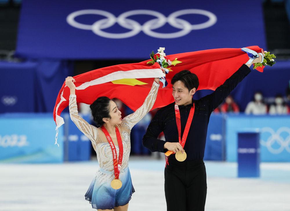 花樣滑冰被譽(yù)為“冰上芭蕾”,在北京冬奧會(huì)花樣滑冰的賽場(chǎng)上,隋文靜/韓聰為觀(guān)眾獻(xiàn)上了一場(chǎng)精彩的比賽,并站上最高領(lǐng)獎(jiǎng)臺(tái)。