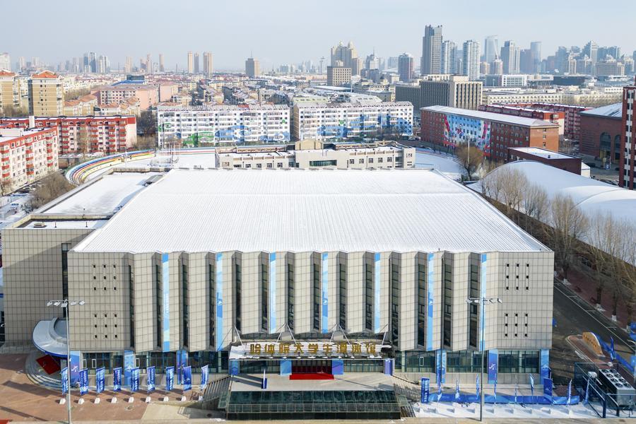 這是1月21日拍攝的哈爾濱體育學(xué)院大學(xué)生滑冰館(女子冰球比賽場館)(無人機照片)。新華社記者 王松 攝