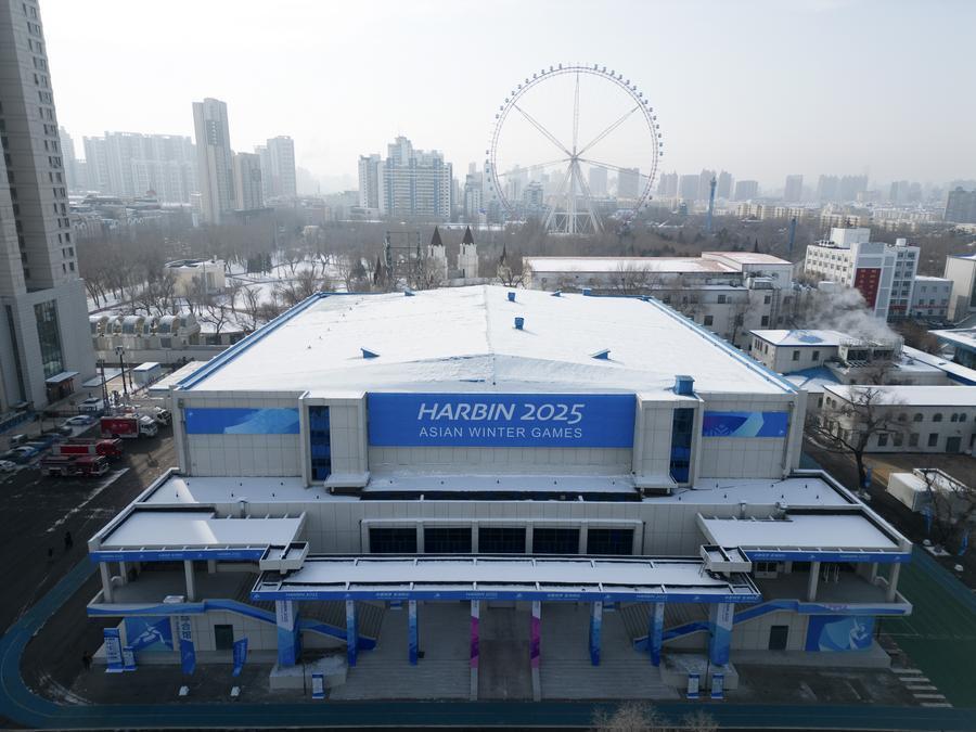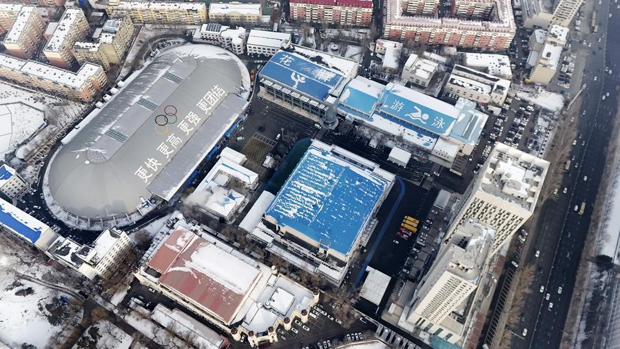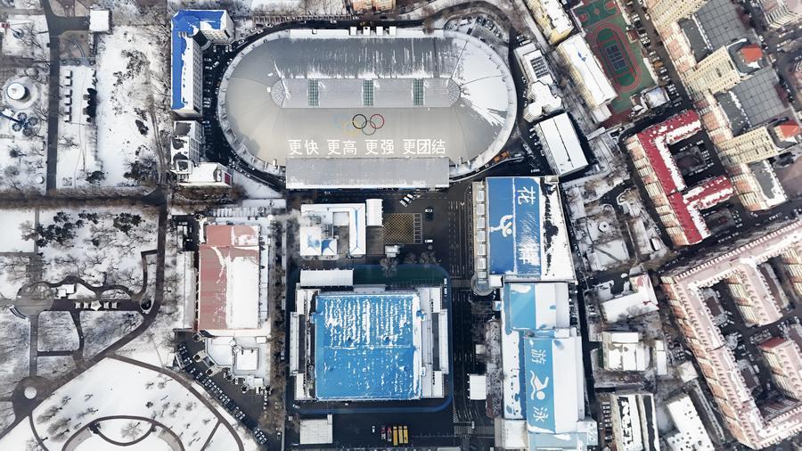 這是1月21日拍攝的哈爾濱市冰球館(男子冰球比賽場館)(無人機照片)。新華社記者 王松 攝