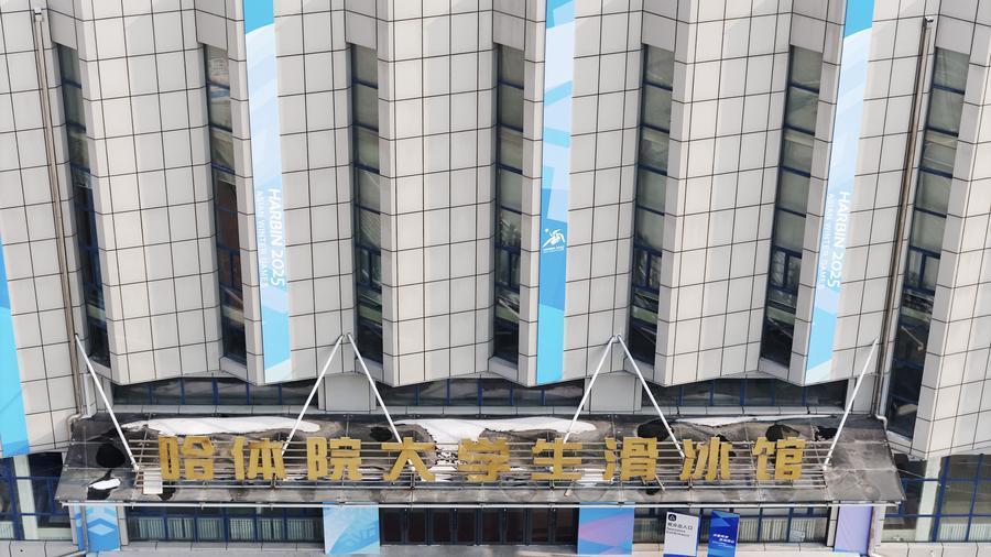 這是1月27日拍攝的哈爾濱體育學(xué)院大學(xué)生滑冰館(女子冰球比賽場館)(無人機照片)。新華社記者 張濤 攝