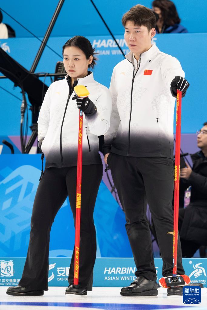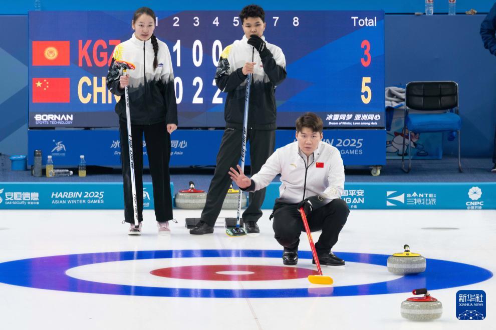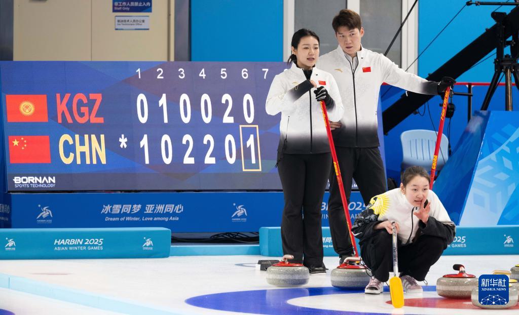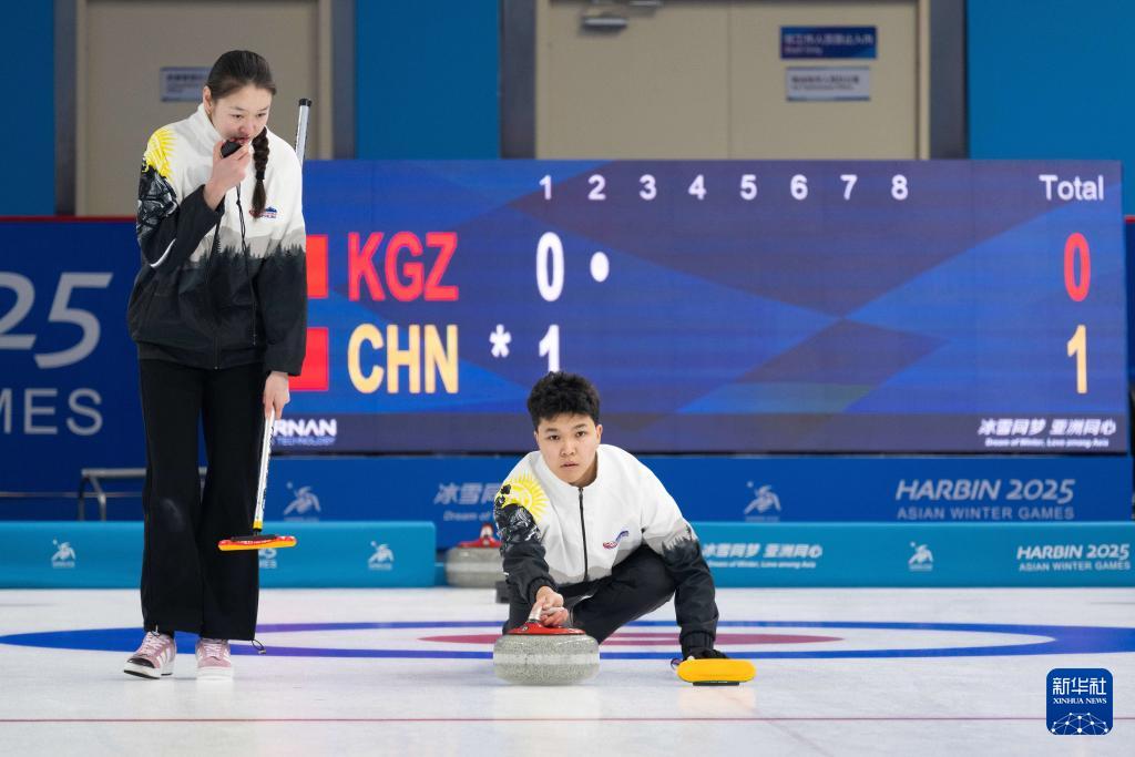 當(dāng)日,在哈爾濱舉行的2025年第九屆亞冬會(huì)冰壺混雙循環(huán)賽B組第3輪比賽中,中國隊(duì)8比3戰(zhàn)勝吉爾吉斯斯坦隊(duì)。