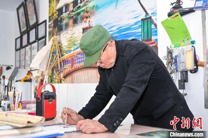 中新網(wǎng)嘉興2月2日電(黃彥君 蔣彧淼)畫(huà)畫(huà)、扎傘骨、藍(lán)印花布裱托、刺孔……農(nóng)歷蛇年春節(jié)期間,在浙江省嘉興市秀洲區(qū)新塍鎮(zhèn),年過(guò)七旬的陳淵明整日把自己“關(guān)”在工作室內(nèi),緊鑼密鼓制作花燈,為元宵節(jié)期間“鰲山燈會(huì)”做準(zhǔn)備。