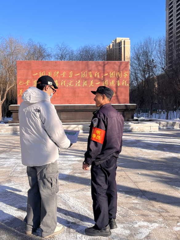 在公園的法治長廊附近,記者見到了文明引導(dǎo)員姚隊。他身穿制服,手持對講機,正在引導(dǎo)游客有序參觀。姚隊表示,文明引導(dǎo)員的任務(wù)就是維護公園秩序,確保游客安全、文明游園。姚隊還提到,文明引導(dǎo)員不僅是公共秩序的維護者,也是法治文化的傳播者。“我們會提醒游客愛護公園設(shè)施,遵守公共秩序,這些都是法治精神的體現(xiàn)”。