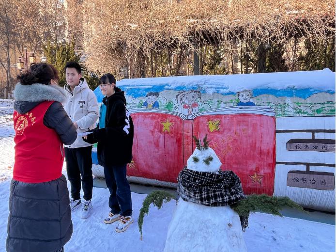 陽光傾灑在雪地上,反射出耀眼的光芒。在這里,純凈無瑕的空間向游客敞開,寧靜而充滿力量,象征著憲法精神在冰雪中依然堅不可摧。作為滄州市法治文化建設(shè)的標(biāo)志性場所,滄州憲法主題公園不僅為市民提供了歡度新春的場所,也展現(xiàn)了法治文化與傳統(tǒng)文化交融的獨特魅力,讓市民在潛移默化中感受法治文化、增強法治意識。在這里,法治精神與新春年味交織,共同繪就了一幅和諧美好的“法治中國”畫卷。這個春節(jié),滄州憲法主題公園用法治點亮了年味,也用法治溫暖了人心。