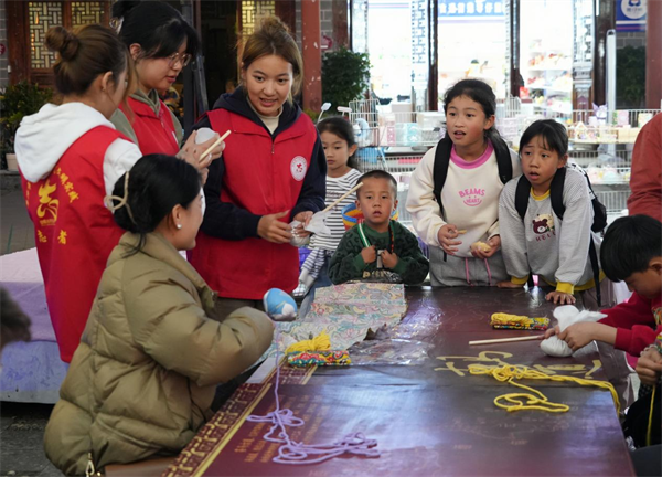 在普洱古鎮(zhèn),豐富多樣的文明實(shí)踐活動(dòng)同步開(kāi)展,書(shū)法愛(ài)好者以筆為媒,飽蘸深情,精心書(shū)寫(xiě)并送上承載著“祝?!薄捌桨病薄敖】怠钡哪珜殹.?dāng)社會(huì)主義核心價(jià)值觀、傳統(tǒng)文化以及移風(fēng)易俗理念巧妙融入謎面時(shí),群眾穿梭于燈謎中,答得不亦樂(lè)乎。此外,燈籠制作、糖畫(huà)制作、烤茶、拓印、染紅蛋、舂粑粑等體驗(yàn)環(huán)節(jié)吸引了不少群眾駐足?,F(xiàn)場(chǎng),各族群眾身著盛裝,手拉手圍著篝火跳舞,歡聲笑語(yǔ)賀佳節(jié),描繪出中華民族一家親的美好畫(huà)面,營(yíng)造歡樂(lè)祥和的節(jié)日氛圍。