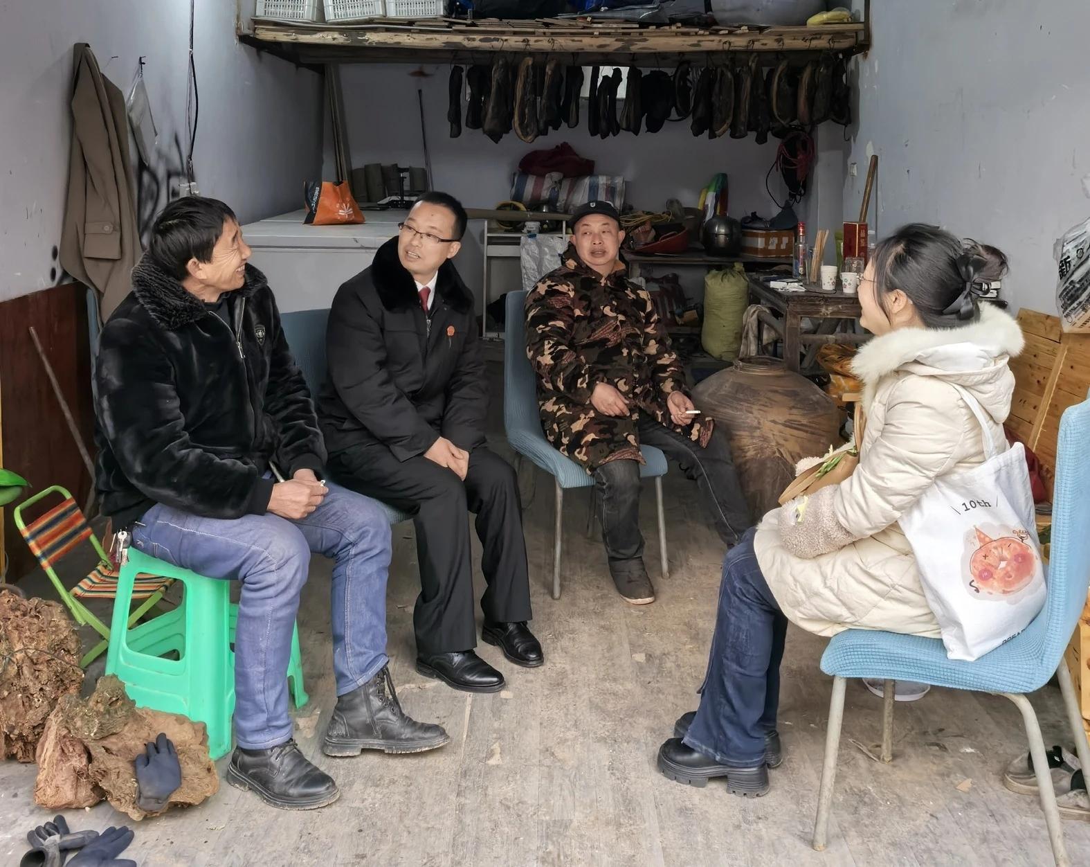 1月23日,屏山法院在開展欠薪專項執(zhí)行行動中,辦案法官(左二)前往申請執(zhí)行人家中了解情況。