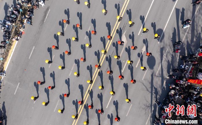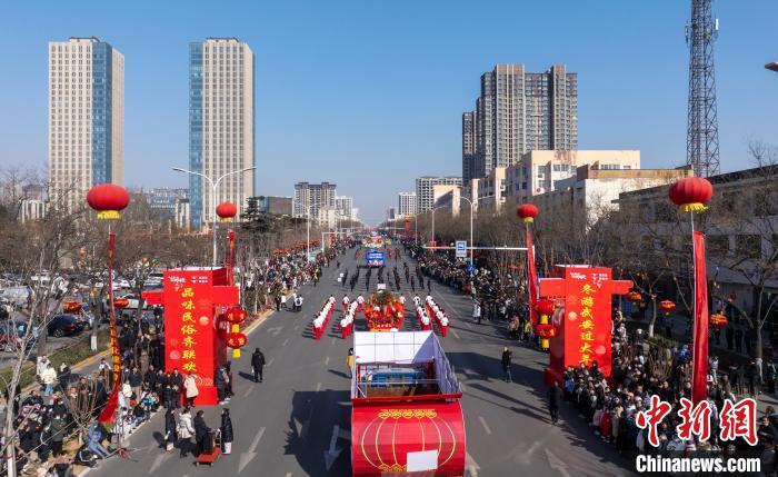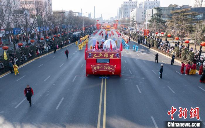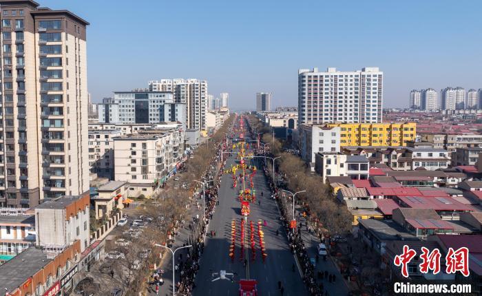 圖為航拍社火巡游現(xiàn)場。 李樹鋒 攝