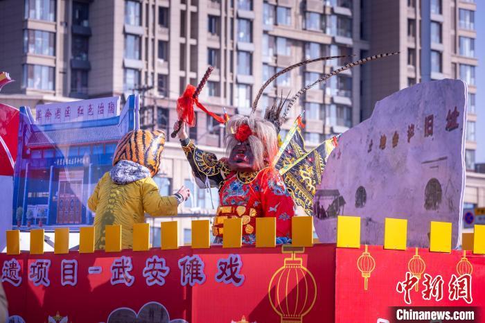 圖為社火巡游現(xiàn)場的武安儺戲表演。 李樹鋒 攝