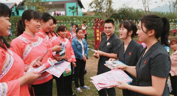 網(wǎng)絡(luò)法治宣傳是一項(xiàng)長期堅(jiān)持的工作,面向網(wǎng)民尤其是面向農(nóng)村老百姓開展網(wǎng)絡(luò)法治宣傳的任務(wù)十分艱巨。廣西壯族自治區(qū)河池市轄9縣2區(qū),全市戶籍總?cè)丝?31.68萬人,其中城鎮(zhèn)戶籍人口110.78萬人,占總?cè)丝诒戎兀☉艏丝诔擎?zhèn)化率)為25.66%(2023年末統(tǒng)計(jì)數(shù)據(jù)),還有300余萬人為非城鎮(zhèn)戶籍人口,境內(nèi)有壯、漢、瑤、苗、侗、水、仫佬、毛南等8個(gè)世居民族,是廣西少數(shù)民族聚居最多的地區(qū)之一。少數(shù)民族文化底蘊(yùn)深厚,是壯族歌仙劉三姐的家鄉(xiāng),也是“世界銅鼓之鄉(xiāng)”。針對上述河池市人口當(dāng)前分布現(xiàn)狀和區(qū)域民族特色,只有結(jié)合河池轄區(qū)農(nóng)村地區(qū)現(xiàn)狀特點(diǎn),充分借助農(nóng)村基層組織的力量和豐富民族風(fēng)俗文化,統(tǒng)籌各級各部門資源,聚焦當(dāng)前電信網(wǎng)絡(luò)詐騙案件持續(xù)高位運(yùn)行及各類詐騙手法不斷翻新等現(xiàn)象,將網(wǎng)絡(luò)法治宣傳內(nèi)容融入當(dāng)?shù)孛袼滋厣幕?,以山歌、新媒體等形式賦予普法新內(nèi)涵,才能讓網(wǎng)絡(luò)法治宣傳向農(nóng)村縱深推進(jìn),從而不斷提升農(nóng)村網(wǎng)絡(luò)法治宣傳力度、深度和廣度,營造農(nóng)村網(wǎng)絡(luò)法治宣傳教育濃厚氛圍,進(jìn)一步增強(qiáng)轄區(qū)內(nèi)廣大農(nóng)村群眾網(wǎng)絡(luò)法治意識。