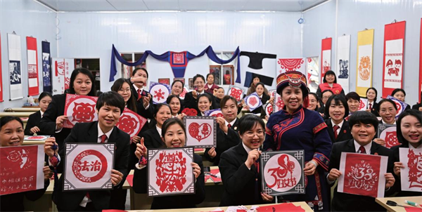 2024年3月8日,河池市羅城仫佬族自治縣利用非遺剪紙技藝開展法治宣傳