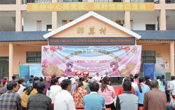 2024年4月9日,以“山歌普法進(jìn)鄉(xiāng)村·共唱民族團(tuán)結(jié)情”為主題的普法山歌會在河池市巴馬瑤族自治縣百林鄉(xiāng)那莫村舉行