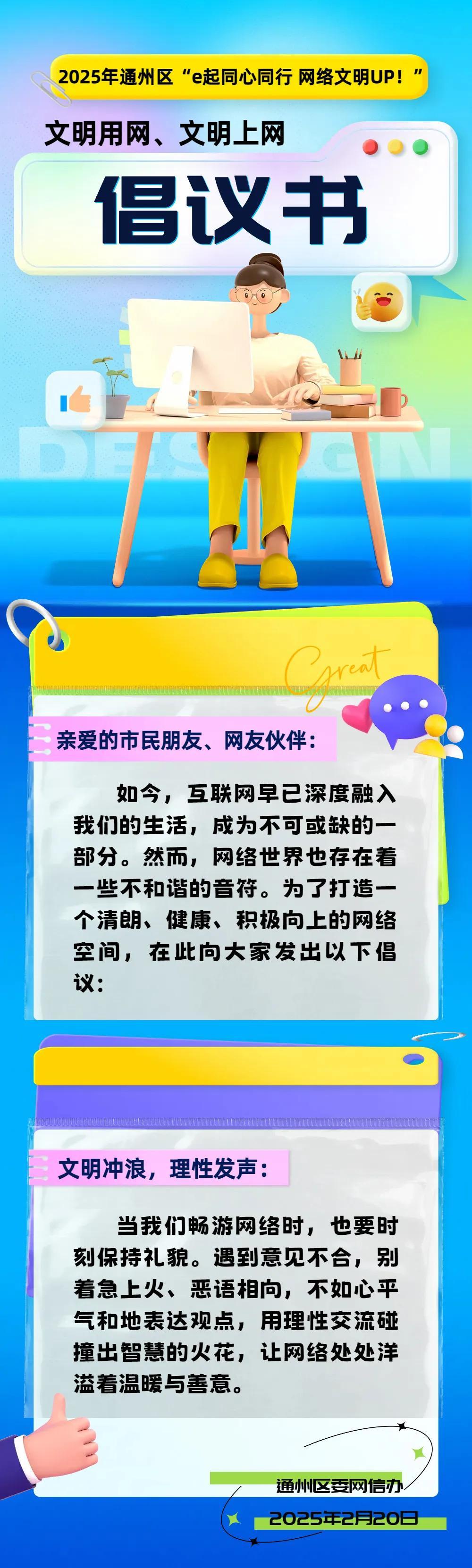 2025年通州區(qū)“e起同心同行 網(wǎng)絡文明UP!”文明用網(wǎng)、文明上網(wǎng)倡議書