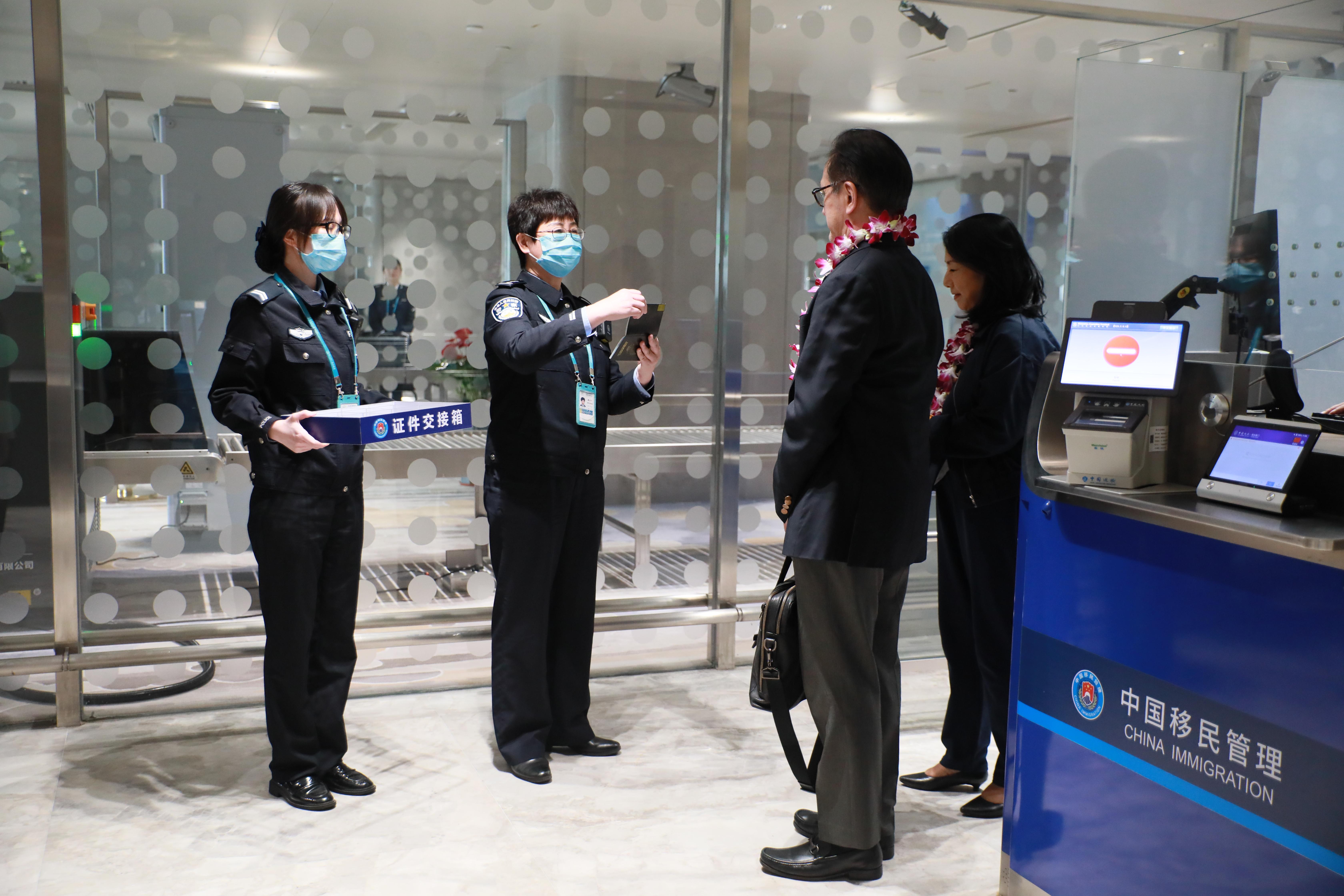 圖為美蘭邊檢站為博鰲論壇年會(huì)嘉賓辦理入境手續(xù) 陳海澤攝