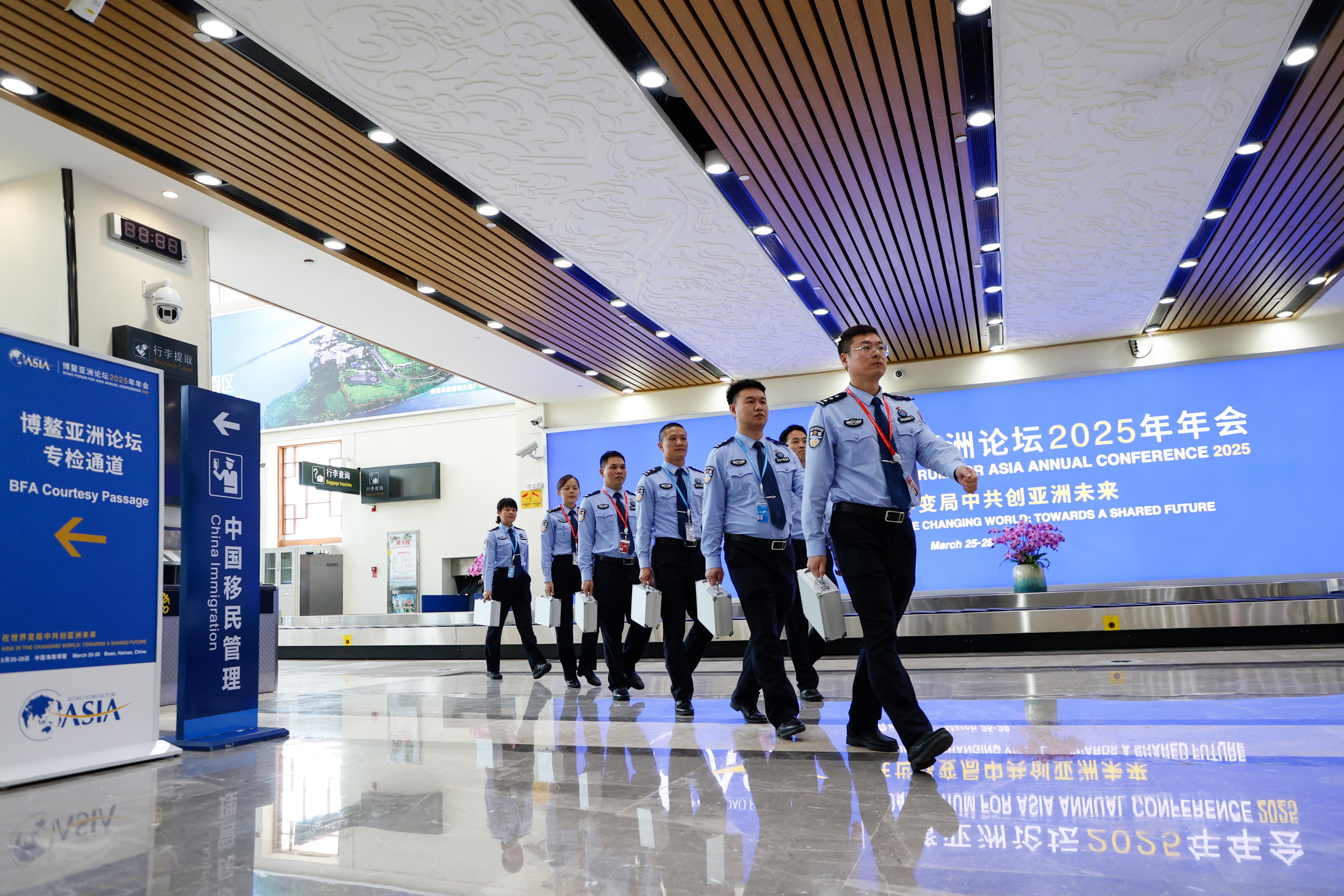 博鰲亞洲論壇2025年年會(huì)于3月25日至28日在海南博鰲舉行。自3月23日起,瓊海博鰲、海口美蘭、三亞鳳凰三大機(jī)場(chǎng)陸續(xù)迎來(lái)與會(huì)人員入境高峰,海南邊檢機(jī)關(guān)優(yōu)化勤務(wù)模式,主動(dòng)靠前服務(wù),努力為入境與會(huì)人員提供便捷高效的口岸通關(guān)保障。