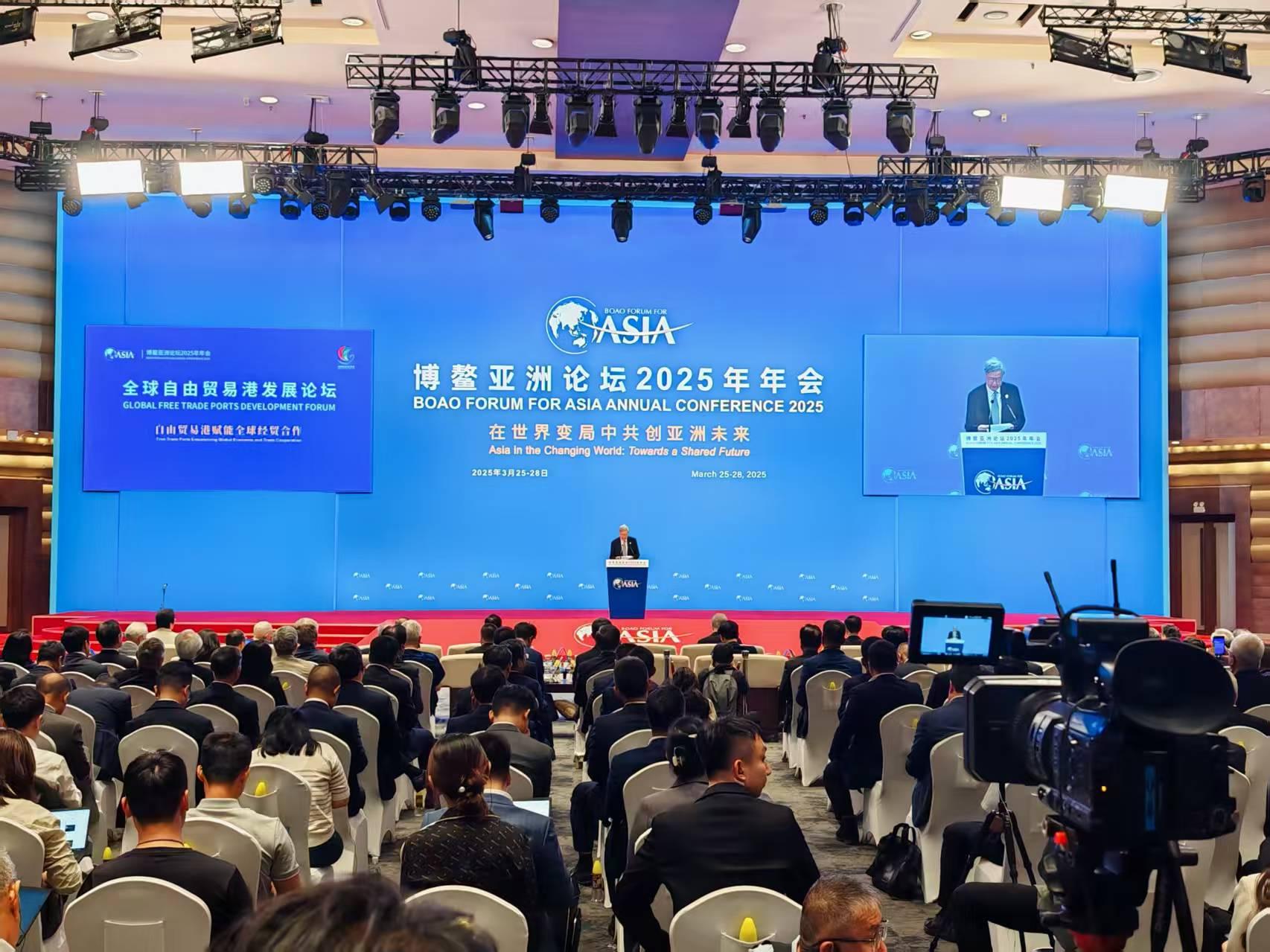 3月25日下午,博鰲亞洲論壇2025年年會全球自由貿(mào)易港發(fā)展論壇開幕。博鰲亞洲論壇理事長、聯(lián)合國第八任秘書長潘基文,博鰲亞洲論壇副理事長、中方首席代表周小川,吉爾吉斯共和國前總理阿克爾別克·扎帕羅夫,中國香港特別行政區(qū)行政長官李家超致辭,中國海南省省長劉小明發(fā)表主旨演講。