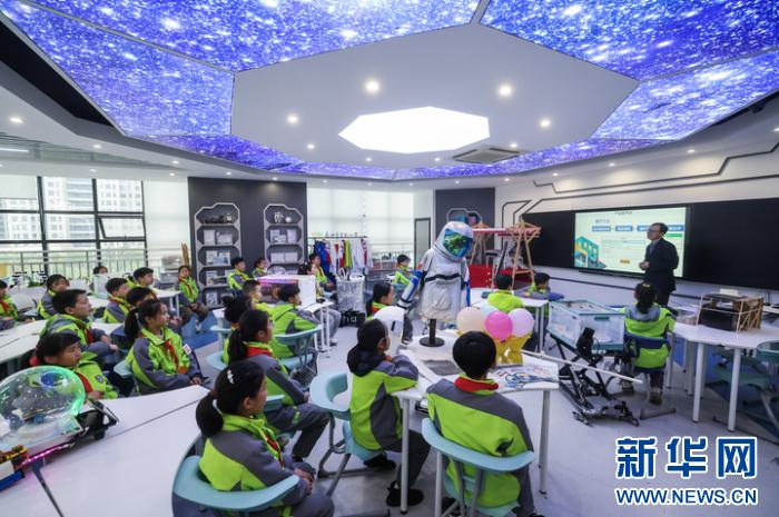 3月12日,在嘉興市實驗小學科技城校區(qū)內(nèi),老師在指導學生完成“AI賦能生活”項目化學習。新華社記者 徐昱 攝