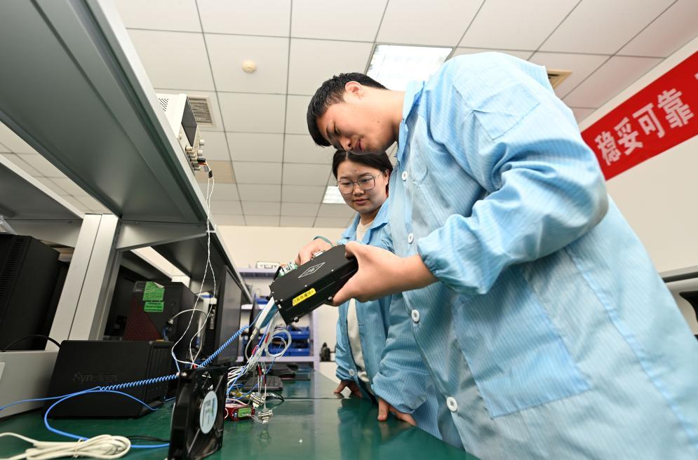 3月21日,天津云遙宇航科技有限公司工作人員在檢查一款衛(wèi)星的核心部件。新華社記者趙子碩 攝