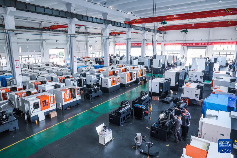 3月26日,在位于嘉興南湖區(qū)大橋鎮(zhèn)的浙江邁興途智能裝備股份有限公司車間內(nèi),工作人員在生產(chǎn)組裝智能化機(jī)床。