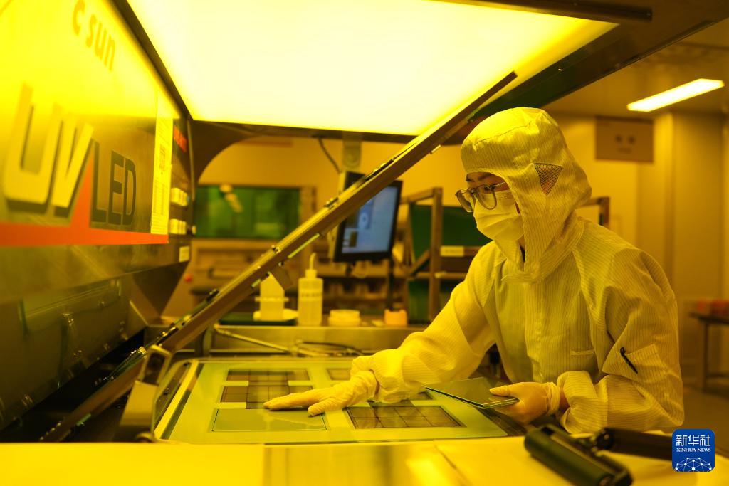 技術工人在寧波江豐同芯半導體材料有限公司的智能生產(chǎn)車間作業(yè)(3月20日攝)。