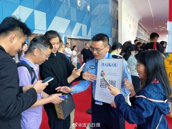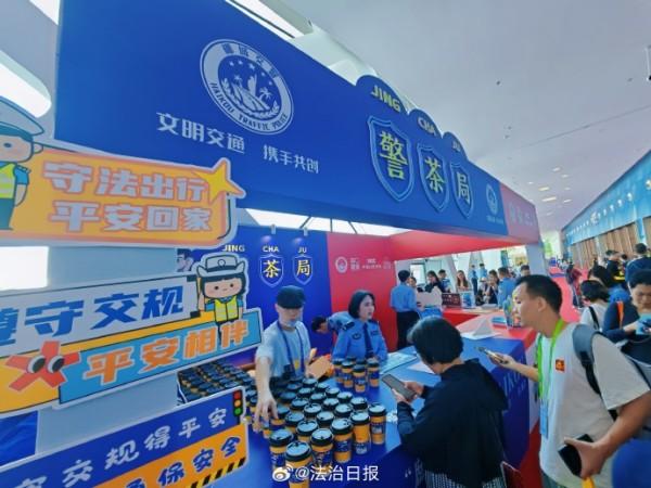 在第五屆中國國際消費品博覽會上,海南??诰降摹熬琛帧惫嫘麄髡箙^(qū)格外引人注目。在現(xiàn)場,只要參與交通安全知識問答、禁毒知識問答等普法活動,就可品嘗到印有文明交通標語的免費茶飲,收獲交警小熊、??诮竟械榷Y品,不少國內外參展客商、市民游客融入其中,現(xiàn)場氛圍十分活躍。除此之外,現(xiàn)場還可觀摩仿真毒品模型、與民警面對面交流,深入了解法律知識,提高安全防范意識。創(chuàng)新宣傳,寓教于樂,這場盛會也因警方這樣的貼心守護更顯生動。