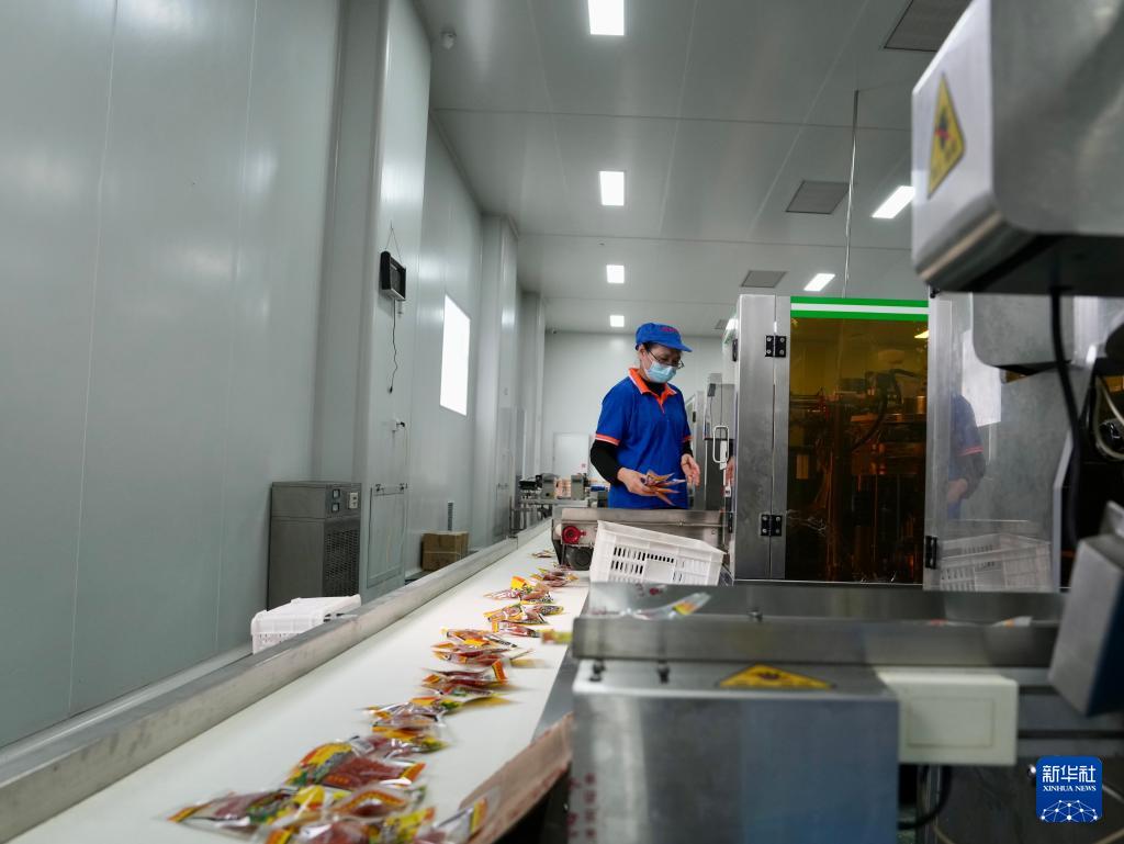 4月8日,在沈陽市陽陽食品有限公司,工人在生產(chǎn)線上工作。
