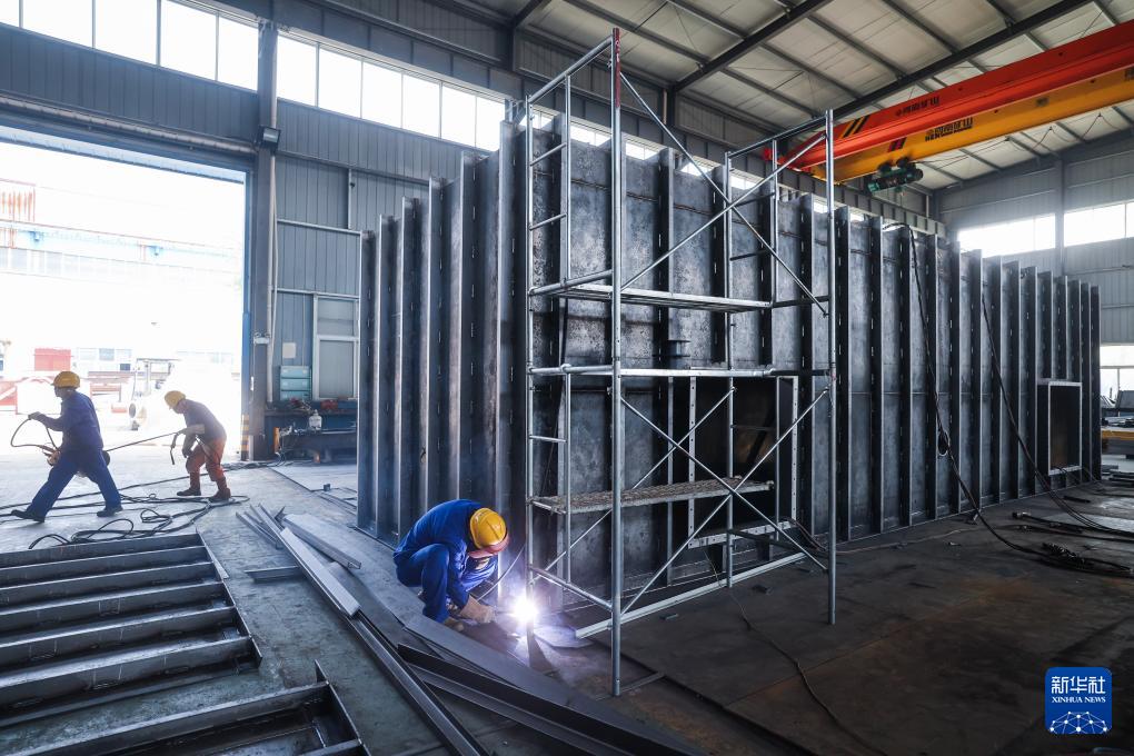 4月9日,在位于慈溪的國家專精特新“小巨人”企業(yè)寧波太極環(huán)保設備有限公司車間內(nèi),工人在生產(chǎn)、組裝銷往東南亞的環(huán)保設備。