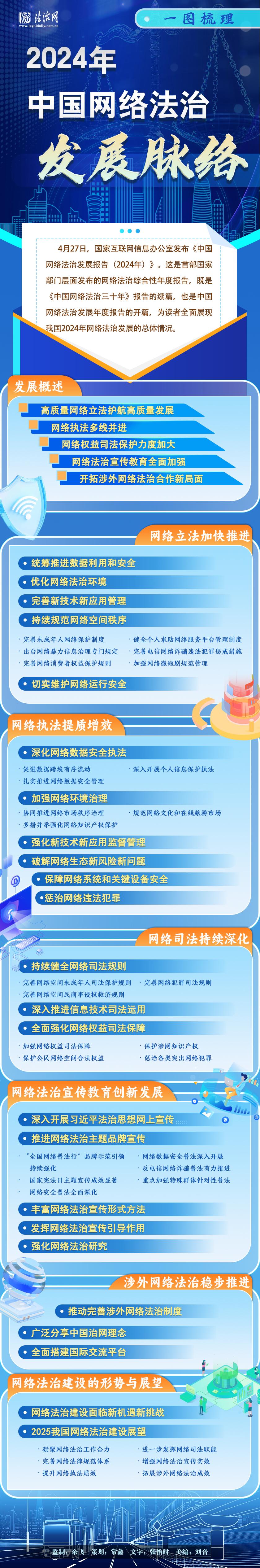 4月27日,國(guó)家互聯(lián)網(wǎng)信息辦公室發(fā)布《中國(guó)網(wǎng)絡(luò)法治發(fā)展報(bào)告(2024年)》。這是首部國(guó)家部門層面發(fā)布的網(wǎng)絡(luò)法治綜合性年度報(bào)告,既是《中國(guó)網(wǎng)絡(luò)法治三十年》報(bào)告的續(xù)篇,也是中國(guó)網(wǎng)絡(luò)法治發(fā)展年度報(bào)告的開篇,為讀者全面展現(xiàn)我國(guó)2024年網(wǎng)絡(luò)法治發(fā)展的總體情況。