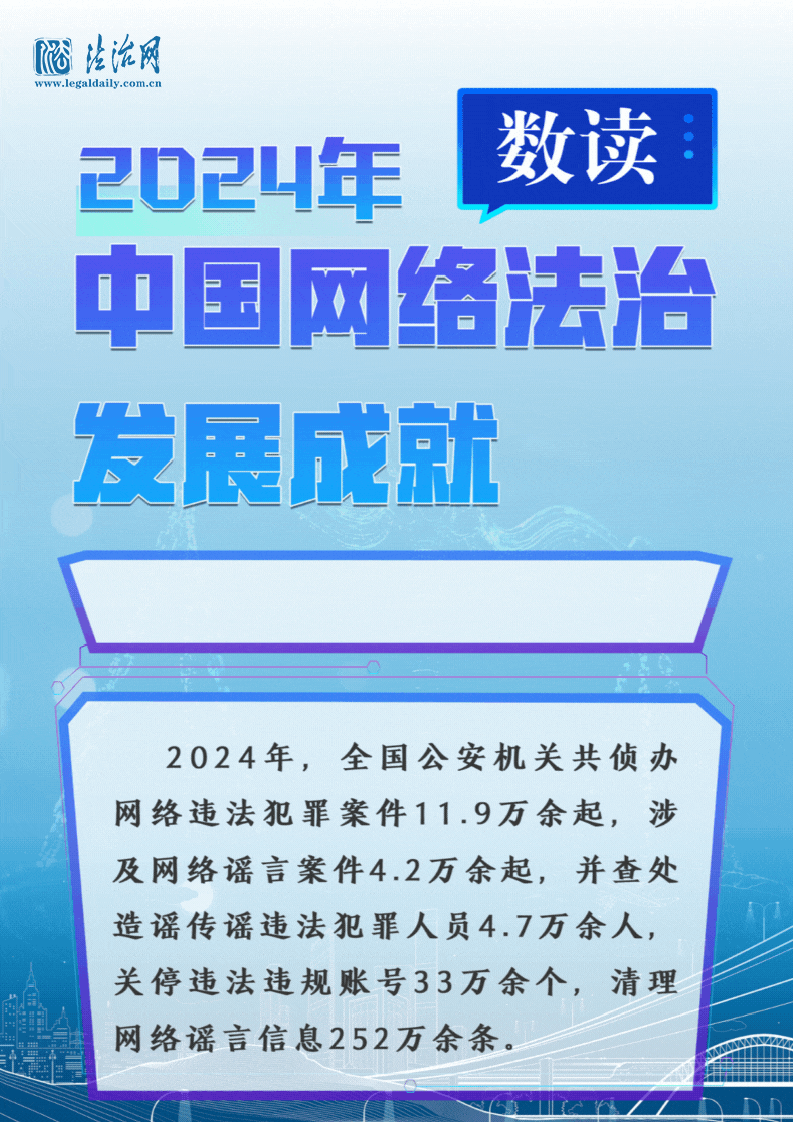 4月27日,國家互聯(lián)網(wǎng)信息辦公室發(fā)布《中國網(wǎng)絡(luò)法治發(fā)展報(bào)告(2024年)》。這是首部國家部門層面發(fā)布的網(wǎng)絡(luò)法治綜合性年度報(bào)告,既是《中國網(wǎng)絡(luò)法治三十年》報(bào)告的續(xù)篇,也是中國網(wǎng)絡(luò)法治發(fā)展年度報(bào)告的開篇。讓我們用一組數(shù)據(jù)帶你看我國網(wǎng)絡(luò)法治建設(shè)這一年的成就,感受網(wǎng)絡(luò)法治建設(shè)邁出的堅(jiān)實(shí)步伐。
