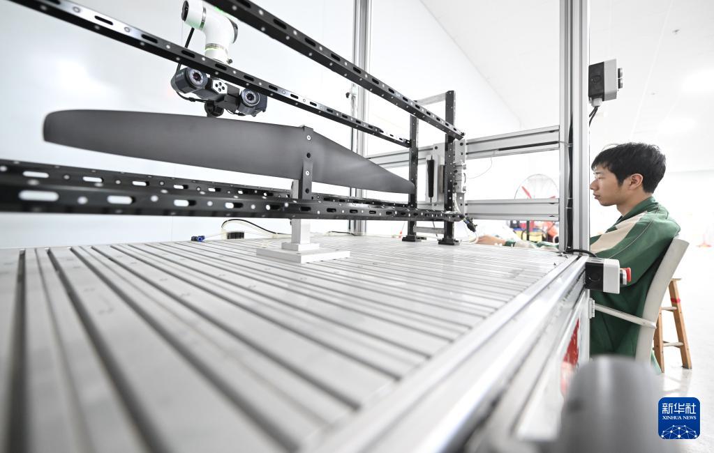 4月24日,在速力復(fù)合材料有限公司的生產(chǎn)車間內(nèi),工人在檢測生產(chǎn)的水翼產(chǎn)品。2024年,速力復(fù)材成為巴黎奧運(yùn)會新增的風(fēng)帆水翼賽事唯一指定生產(chǎn)商。