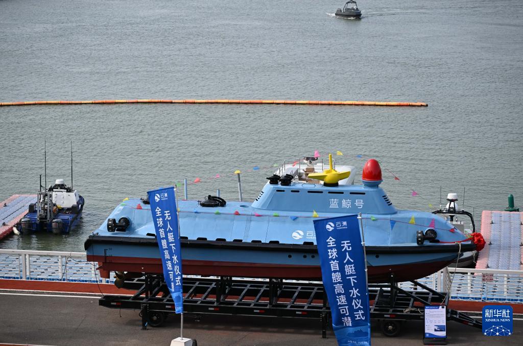 4月29日在珠海云洲智能科技股份有限公司拍攝的“藍鯨號”高速可潛無人艇。