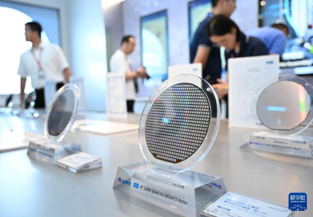 4月29日在珠海格力電子元器件有限公司拍攝的6英寸碳化硅晶圓。