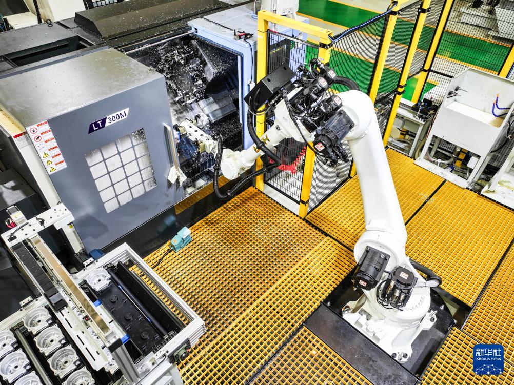 這是5月9日在位于北碚區(qū)的重慶順多利機(jī)車有限責(zé)任公司精工基地拍攝的自動化生產(chǎn)作業(yè)現(xiàn)場。