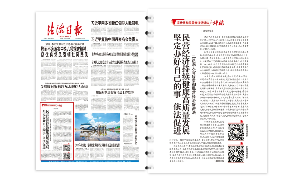 制定民營經(jīng)濟(jì)促進(jìn)法是貫徹習(xí)近平法治思想、習(xí)近平經(jīng)濟(jì)思想的生動(dòng)實(shí)踐,是貫徹落實(shí)黨的二十屆三中全會(huì)精神和習(xí)近平總書記2月17日在民營企業(yè)座談會(huì)上的重要講話精神的重大舉措,是社會(huì)主義市場(chǎng)經(jīng)濟(jì)建設(shè)的標(biāo)志性事件,在我國民營經(jīng)濟(jì)發(fā)展歷程中具有里程碑意義。當(dāng)前,世界百年未有之大變局加速演進(jìn),受外部環(huán)境、政策落實(shí)不到位等內(nèi)外多重因素交織影響,民營經(jīng)濟(jì)面臨一些困難和挑戰(zhàn)。習(xí)近平總書記多次強(qiáng)調(diào),“保持定力,增強(qiáng)信心,集中精力辦好自己的事情,是我們應(yīng)對(duì)各種風(fēng)險(xiǎn)挑戰(zhàn)的關(guān)鍵”。促進(jìn)民營經(jīng)濟(jì)持續(xù)、健康、高質(zhì)量發(fā)展正是當(dāng)下辦好自己的事情的一個(gè)非常重要的方面。黨中央決定制定出臺(tái)民營經(jīng)濟(jì)促進(jìn)法,將黨和國家關(guān)于民營經(jīng)濟(jì)的方針政策和實(shí)踐中行之有效的經(jīng)驗(yàn)做法確定為法律制度,鞏固改革成果,依法促進(jìn)民營經(jīng)濟(jì)發(fā)展壯大,可謂正當(dāng)其時(shí)、十分必要。