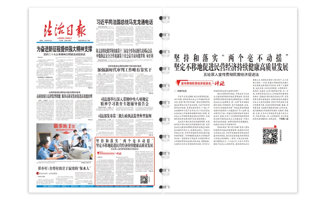 制定民營經(jīng)濟(jì)促進(jìn)法,與憲法關(guān)于社會(huì)主義基本經(jīng)濟(jì)制度的規(guī)定貫通起來,將支持和保障民營經(jīng)濟(jì)發(fā)展的法律制度融入中國特色社會(huì)主義法律體系,第一次將“毫不動(dòng)搖鞏固和發(fā)展公有制經(jīng)濟(jì),毫不動(dòng)搖鼓勵(lì)、支持、引導(dǎo)非公有制經(jīng)濟(jì)發(fā)展”“促進(jìn)民營經(jīng)濟(jì)健康發(fā)展和民營經(jīng)濟(jì)人士健康成長”寫入法律。這必將有利于進(jìn)一步激發(fā)民營經(jīng)濟(jì)組織發(fā)展內(nèi)生動(dòng)力,鼓勵(lì)、引導(dǎo)廣大民營經(jīng)濟(jì)組織經(jīng)營者堅(jiān)定做中國特色社會(huì)主義的建設(shè)者、中國式現(xiàn)代化的促進(jìn)者,發(fā)揮民營經(jīng)濟(jì)在強(qiáng)國建設(shè)、民族復(fù)興偉業(yè)中的重要作用。