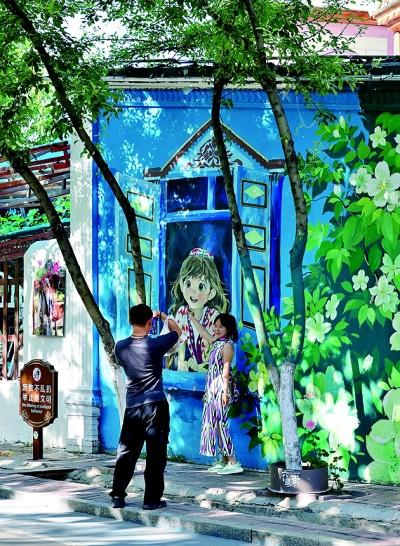 游客在新疆伊犁伊寧市六星街拍照打卡。光明日?qǐng)?bào)記者 閆匯芳攝