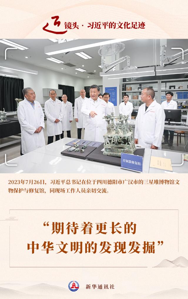 2023年7月26日,習近平總書記來到這里考察,對三星堆博物館新館的落成使用表示熱烈祝賀。