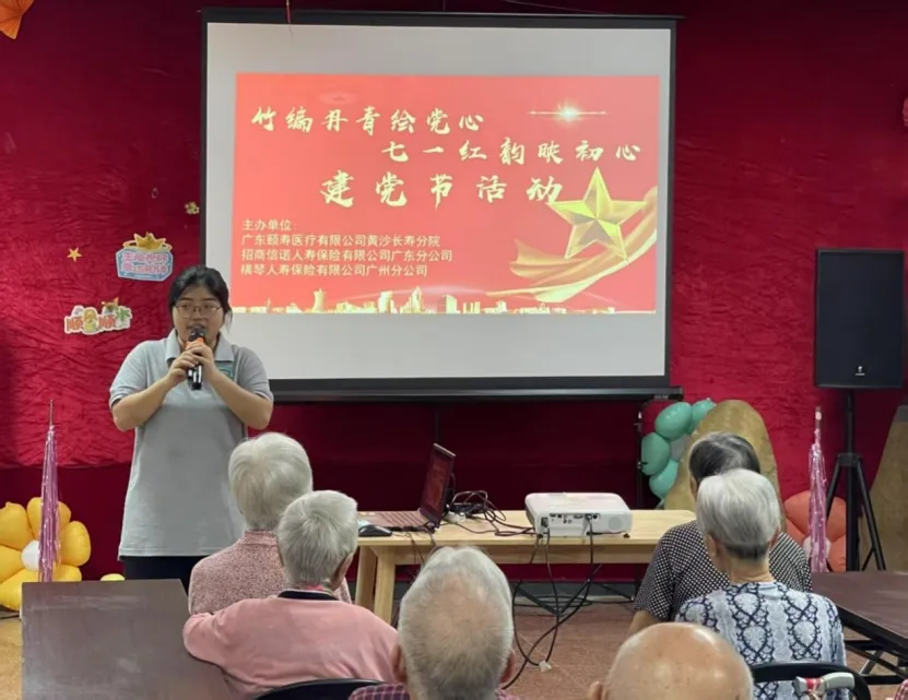 為熱烈慶祝中國共產(chǎn)黨建黨104周年,弘揚(yáng)尊老敬老傳統(tǒng)美德,踐行金融為民初心,7月1日下午,橫琴人壽廣州黨支部及廣州分公司,聯(lián)合公益合作伙伴招商信諾廣東分公司,共同走進(jìn)頤壽安養(yǎng)養(yǎng)老院,開展了一場主題鮮明、情意濃濃的“竹編丹青繪黨心,七一紅韻映初心”建黨紀(jì)念日主題活動暨“7.8全國保險(xiǎn)公眾宣傳日”活動,以公益服務(wù)與紅色教育相結(jié)合的特殊方式為黨的生日獻(xiàn)禮。