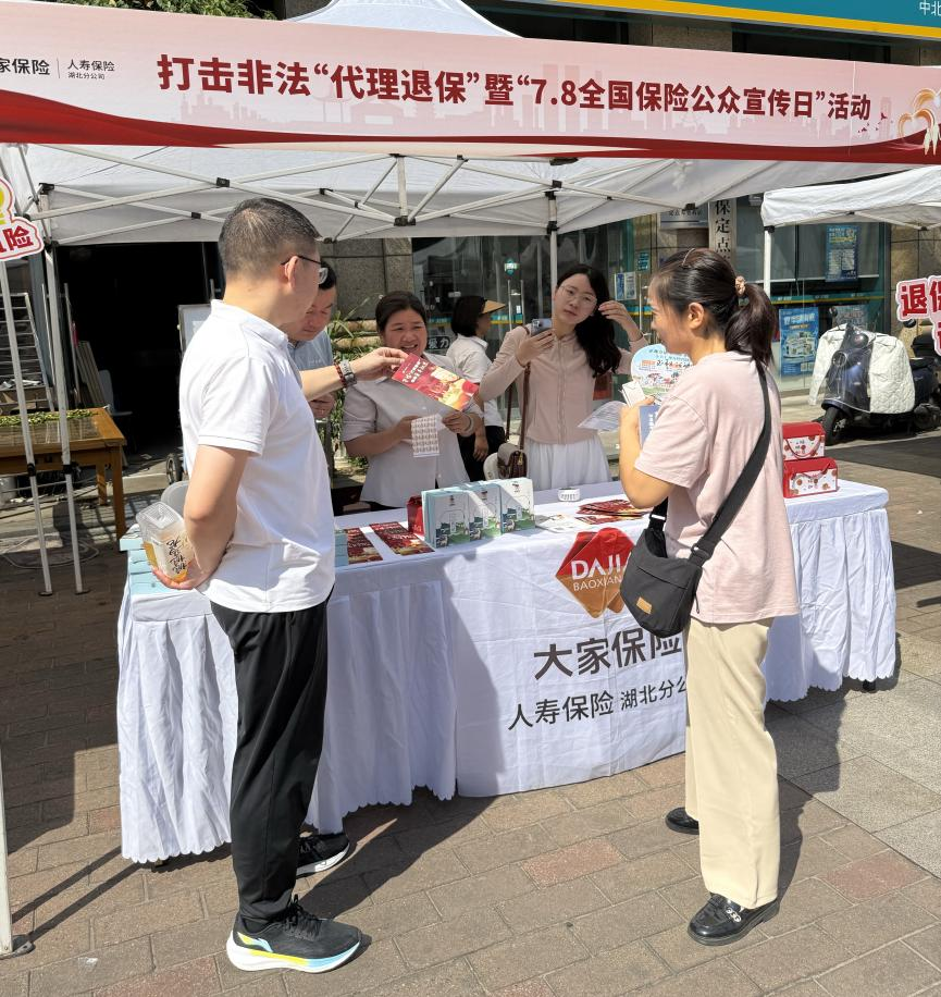 7月5日,在2025年“7.8全國(guó)保險(xiǎn)公眾宣傳日”來(lái)臨之際,大家人壽湖北分公司與武漢市12家金融機(jī)構(gòu)一道,冒著酷暑走進(jìn)武昌區(qū)復(fù)地東湖國(guó)際武重社區(qū),積極參加由國(guó)家金融監(jiān)督管理總局湖北監(jiān)管局領(lǐng)導(dǎo)、湖北省保險(xiǎn)行業(yè)協(xié)會(huì)指導(dǎo)、極目新聞主辦的“向非法代理退保說(shuō)不,我們?cè)谛袆?dòng)”宣傳活動(dòng)。本次活動(dòng)以打擊非法“代理退?!濒摺?.8全國(guó)保險(xiǎn)公眾宣傳日”為主題,吸引了眾多社區(qū)居民參與,以豐富多元的形式掀起社區(qū)公眾反詐防騙熱潮。