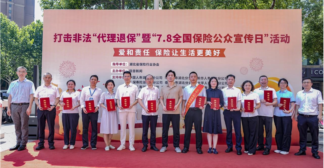 活動(dòng)現(xiàn)場(chǎng),大家人壽湖北分公司代表與12家金融機(jī)構(gòu)代表聯(lián)合發(fā)起倡議,鄭重宣讀《打擊非法代理退保承諾書(shū)》,展現(xiàn)行業(yè)堅(jiān)決打擊非法“代理退保”黑灰產(chǎn)的決心。國(guó)家金融監(jiān)督管理總局湖北監(jiān)管局、湖北省保險(xiǎn)行業(yè)協(xié)會(huì)和極目新聞相關(guān)領(lǐng)導(dǎo)共同為現(xiàn)場(chǎng)保險(xiǎn)公司頒發(fā)“打擊非法‘代理退?!蠕h單位”榮譽(yù)證書(shū),倡議行業(yè)助力保險(xiǎn)消費(fèi)者守護(hù)好“錢(qián)袋子”。